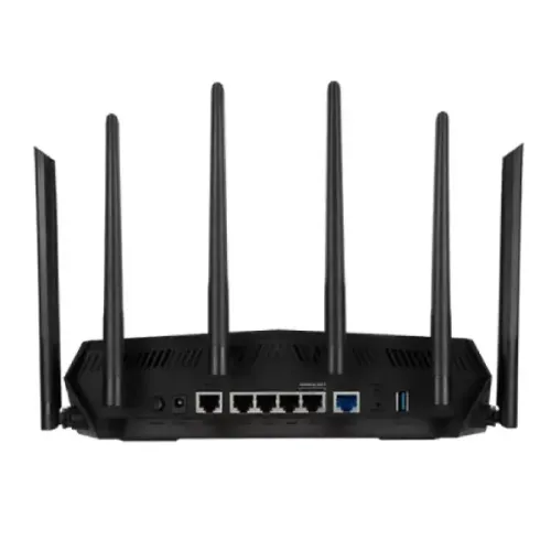 The Asus TUF Gaming AX6000 6000mbps Dual Band Gaming Router is designed to deliver ultra-fast and stable wireless connectivity, making it an ideal choice for gaming enthusiasts and heavy internet users. Utilizing the latest WiFi 6 (802.11ax) technology, this WiFi 6 Router offers impressive speeds of up to 6000 Mbps, ensuring seamless online gaming, streaming, and browsing experiences. The Dual Band Router operates on both 2.4 GHz and 5 GHz frequencies with a 4×4 MIMO configuration and six external antennas to maximize coverage and minimize interference. Powered by a 2.0 GHz quad-core processor and 512 MB of RAM, this Gaming Router ensures robust performance and efficient handling of multiple devices. It includes dual 2.5G Ethernet ports for high-speed wired connections, making it a true Gigabit Router ideal for gaming consoles and PCs. The router supports AiMesh technology, allowing you to create a whole-home mesh network for extended coverage. The AiProtection Pro security suite provides comprehensive network protection, including malicious site blocking and two-way IPS, ensuring your online activities are safe and secure. Additionally, the router features customizable AURA RGB lighting, adding a stylish touch to your gaming setup. With advanced features like OFDMA, MU-MIMO, and beamforming, the TUF Gaming AX6000 enhances network efficiency and performance, even in device-dense environments. Easy setup and management through the ASUS Router app make this Dual Band Router user-friendly for both tech-savvy users and beginners. Whether you’re a hardcore gamer or a heavy internet user, the Asus TUF Gaming AX6000 6000mbps Dual Band Gaming Router provides the speed, stability, and security needed for an optimal online experience, making it a top choice among WiFi 6 Routers and Gigabit Routers.