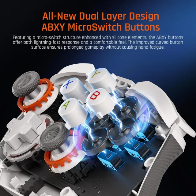 Equipped with TMR electromagnetic joysticks, the controller delivers smooth and ultra-precise control with 2000 levels of resolution. These joysticks reduce drift and wear over time, giving players better accuracy, consistency, and long-lasting reliability for FPS, action, and racing games.
