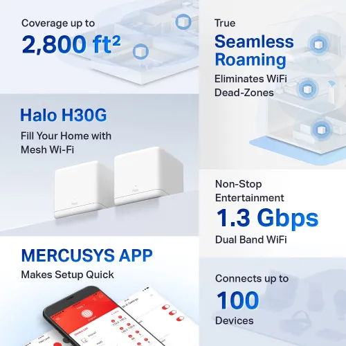The latest price of Mercusys Halo H30G Mesh Router (2 Pack) in Bangladesh is 5,150৳. You can buy the Mercusys Halo H30G Mesh Router (2 Pack) at best price from our website or visit any of our showrooms.