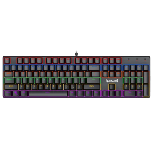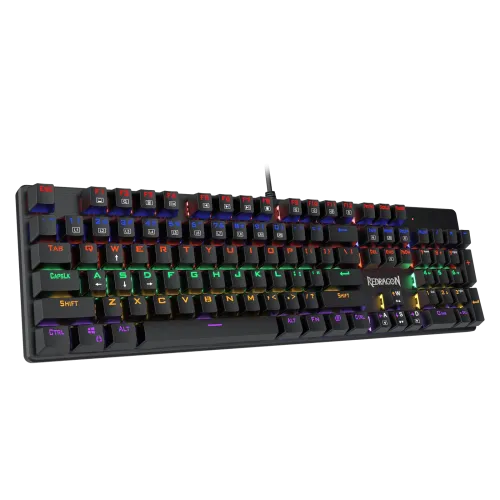 The Redragon K608 Valheim Rainbow Mechanical Gaming Keyboard is a high-performance keyboard designed for gamers. It features classic red switch for intensive gaming. The keyboard boasts a decent rainbow backlight with nine vibrant modes and eight preset gaming lighting options. This allows you to customize your keyboard’s appearance and create different atmospheres for work or gaming. Additionally, two customizable backlit modes are available for personalized use. With 100% anti-ghosting and NKRO technology, all 104 keys ensure precise and accurate simultaneous key actuation, even during intense gameplay. This guarantees that your commands are registered accurately and quickly. The keyboard features a smooth brushed plate, securely fixing all 104 keys in place while maintaining a modern minimalist style. It offers adjustable stands that support different board angles, allowing you to find the most comfortable typing or gaming position. The neat floated design of the keys provides a natural and ample spacing between them, enhancing both the visual aesthetics and the typing experience. Furthermore, this design reduces the accumulation of dust, making it easy to clean with a hairdryer.