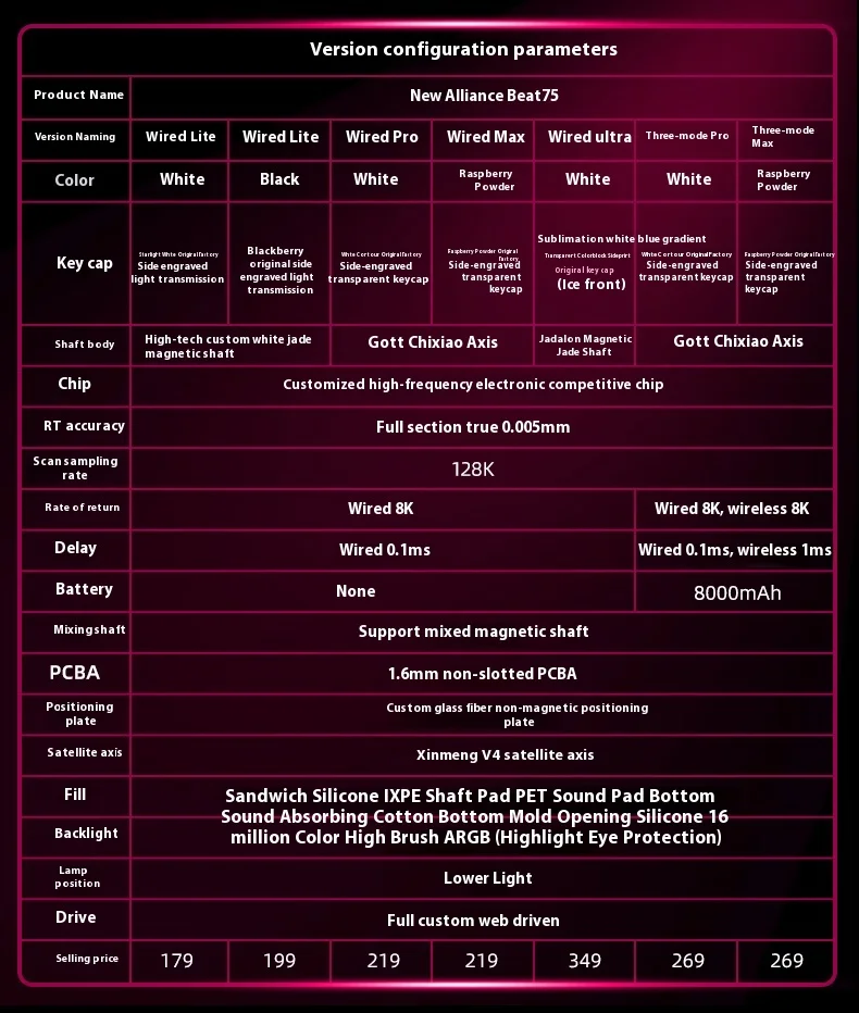 The Beat75 showcases superior construction with its 1.6mm non-slotted PCBA design and custom glass fiber non-magnetic positioning plate. This combination provides excellent stability and durability while maintaining the keyboard’s lightweight profile. The Xinmeng V4 satellite axis system ensures smooth and consistent operation of larger keys like the spacebar and shift keys. The thoughtful engineering extends to every component, creating a keyboard that can withstand intensive use while maintaining peak performance.