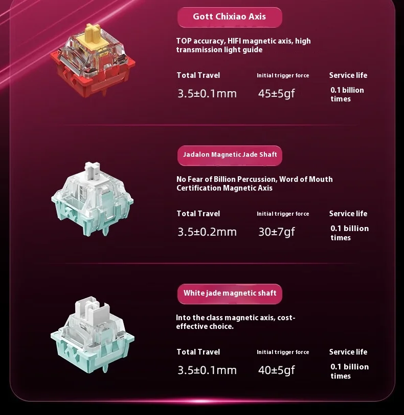 The XINMENG Beat75 features proprietary high-tech custom white jade magnetic switches that represent the next evolution in keyboard technology. Unlike traditional mechanical switches that rely on physical contact points, these magnetic switches use Hall effect sensors to detect key presses through magnetic field changes. This innovative design eliminates physical wear and provides consistent actuation force throughout the switch’s lifespan. The magnetic technology also enables adjustable actuation points, allowing users to fine-tune their typing experience for different gaming scenarios or personal preferences.